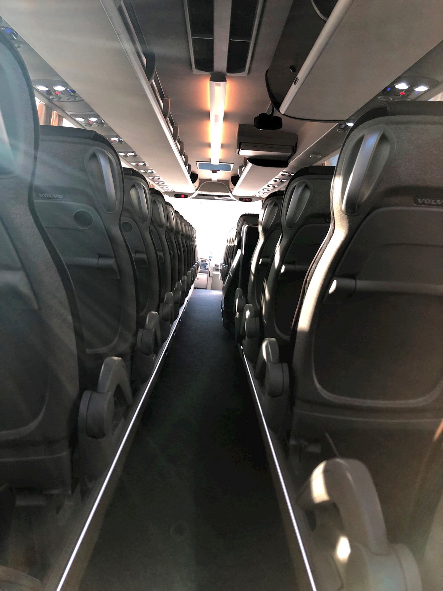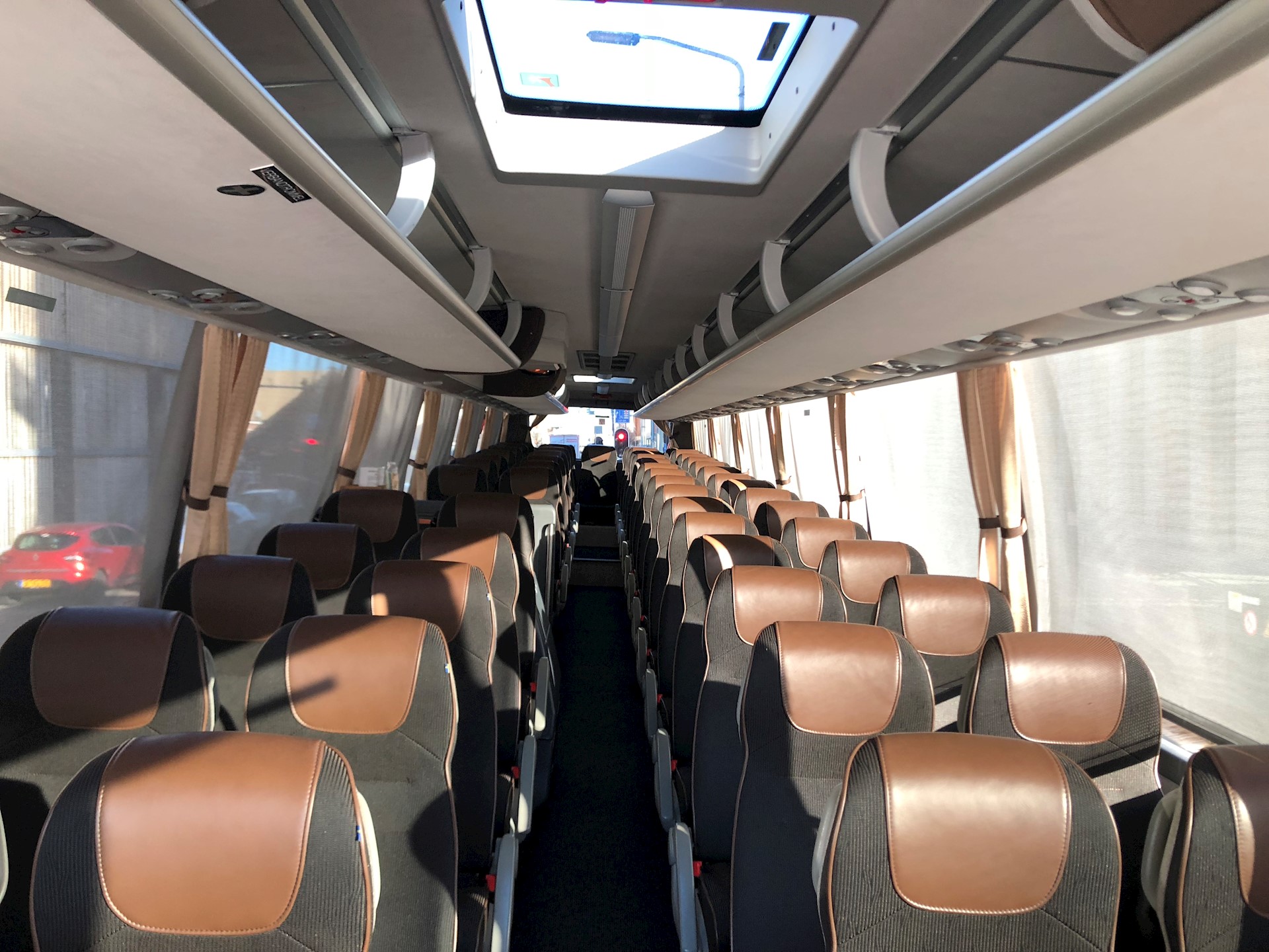 - Voertuig is voorzien van ruime luxe stoelindeling met gordels, LCD schermen en koelkast.